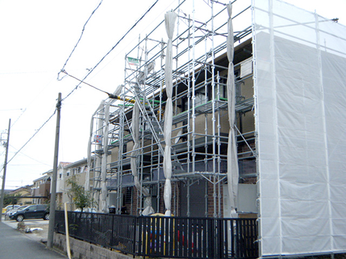 住宅の施工はもちろん、商業施設等も手掛けております。 見た目も美しく、他の作業をされる方にも作業しやすい、そして何より安全な足場の組立を心掛けております。